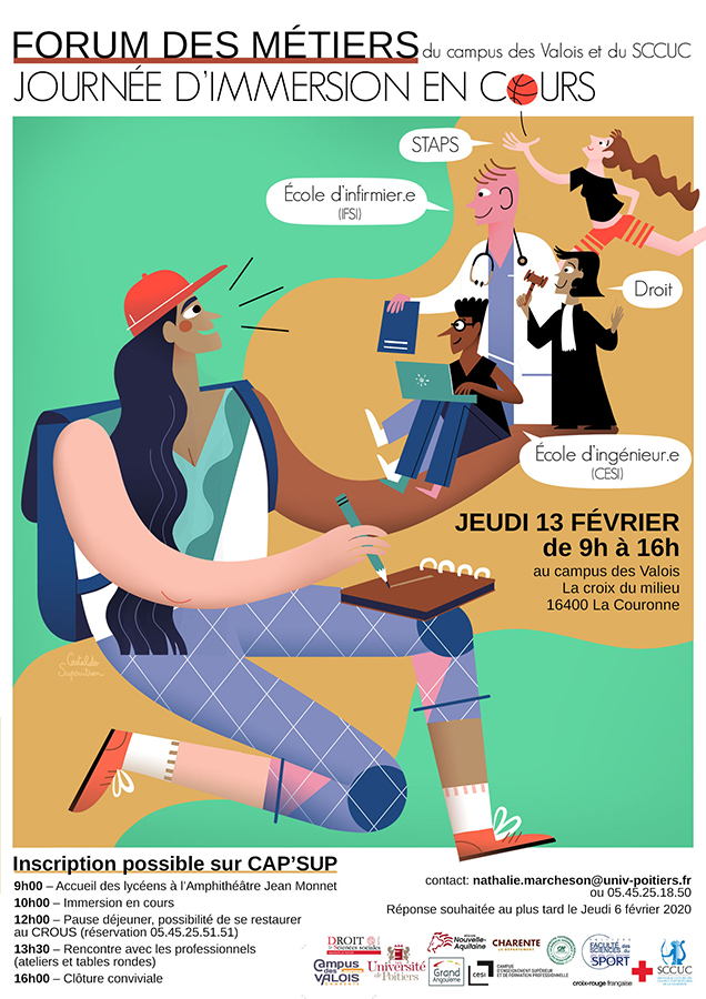 L’édition annuelle du forum des métiers du Campus des Valois et du SCCUC se tiendra le jeudi 13 février 2020 au centre universitaire à La Couronne. Cette journée d’immersion en cours sera l’occasion pour les lycéens d’assister à des cours de droits, de Staps, à l’IFSI ou au CESI et de rencontrer l’après-midi des professionnels dans le cadre d’ateliers ou de tables rondes.