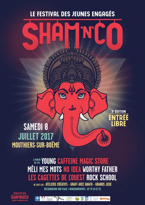 La troisième édition du festival Sham&Co se déroulera le samedi 8 juillet 2017 de 15h à minuit à Mouthiers-sur-Boëme (derrière l’église)