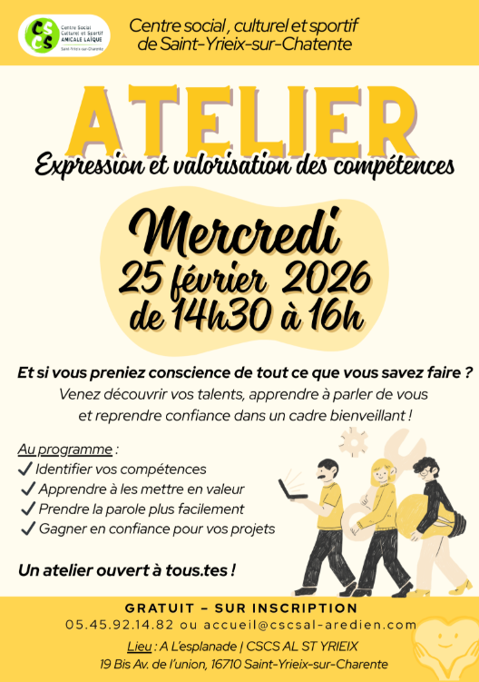 Sur place : documentation à jour, ateliers pratiques (CV, lettres, entretiens), offres locales, et permanences de partenaires. Le CIJ organise également des événements et temps forts pour découvrir métiers, études et opportunités en Charente. Un espace convivial au cœur d’Angoulême pour passer de l’idée à l’action.
