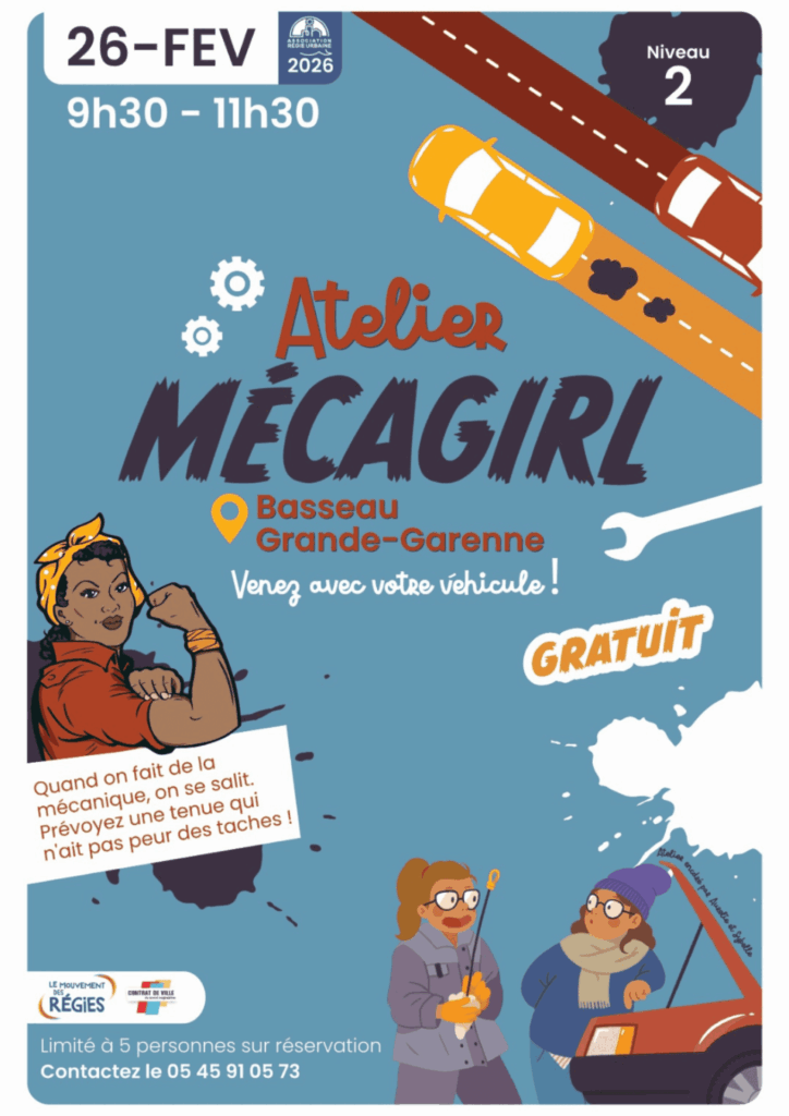 L’Association Régie Urbaine (ARU) organise des ateliers Mecagirl pour apprendre la mécanique et comprendre comment fonctionne sa voiture. L’ARU ouvre cet espace pour permettre aux femmes de reprendre le contrôle sur un sujet trop souvent perçu comme masculin.