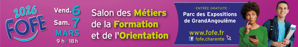 Le vendredi 6 et samedi 7 mars 2026 de 9h à 18h aura lieu le salon des Métiers de la Formation et de l’Orientation au Parc des Expositions de GrandAngoulême, à l’Isle d’Espagnac. Au cours de ces deux jours, vous pourrez rencontrer les représentants d’établissements scolaires, de centres de formation d’apprentis, d’Universités, d’Écoles de l’enseignement supérieur… Vous […]