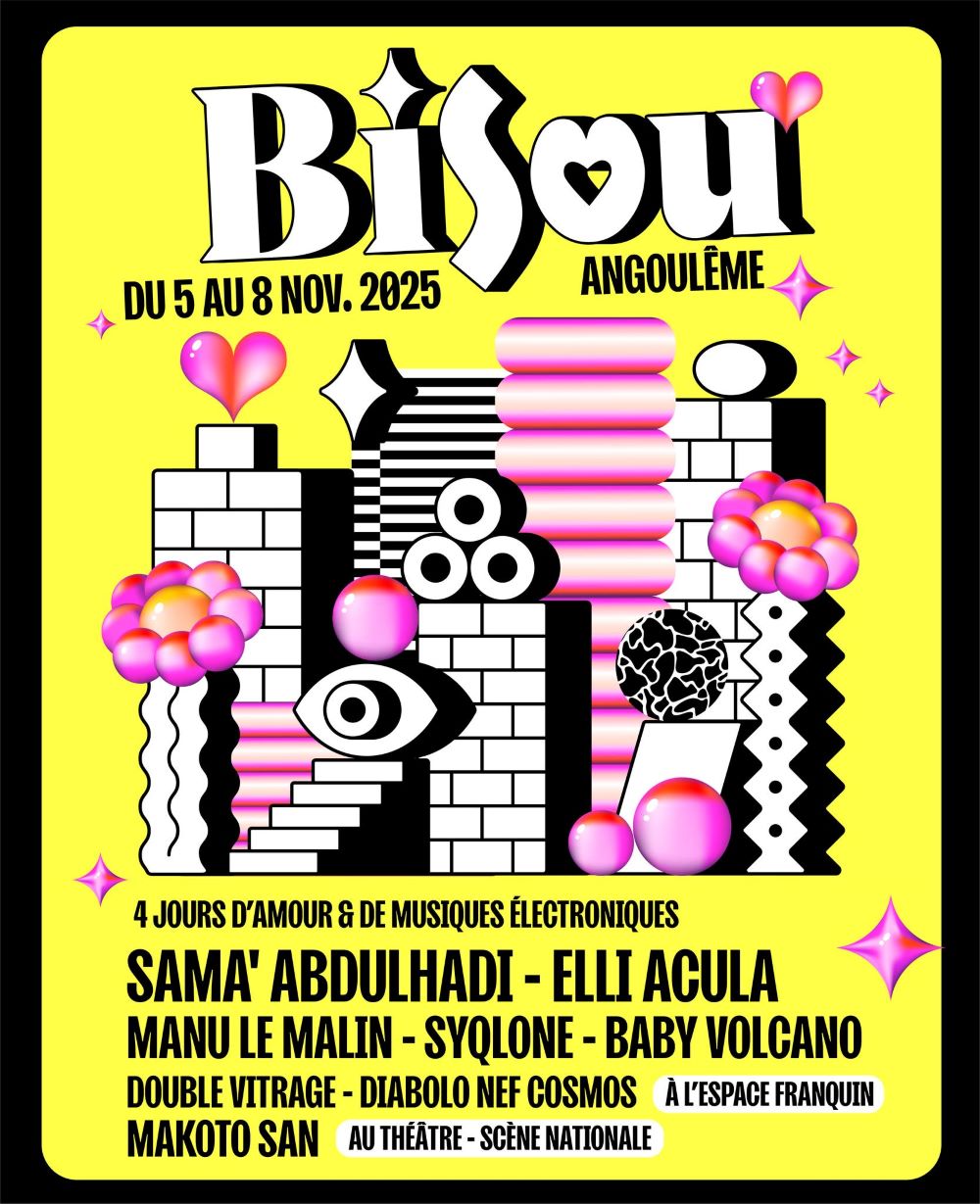 Le Festival BISOU revient du 5 au 8 novembre 2025 au cœur du centre-ville d’Angoulême pour une nouvelle édition placée sous le signe de l’amour, du partage et des musiques électroniques. Pendant quatre jours, vibrez au rythme d’une programmation audacieuse mêlant live et DJ sets.